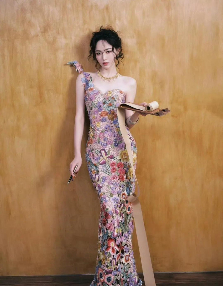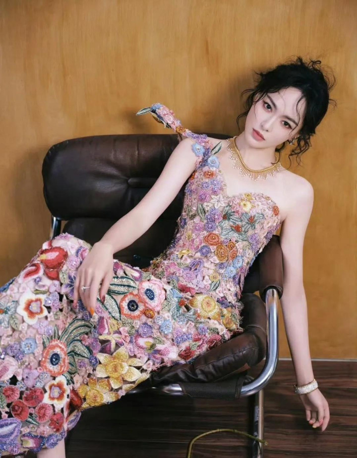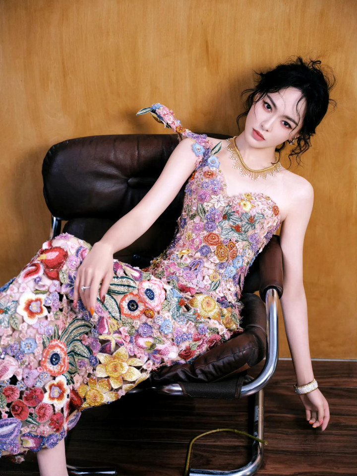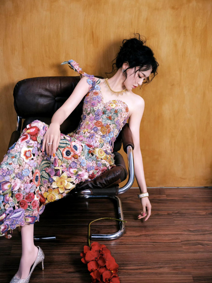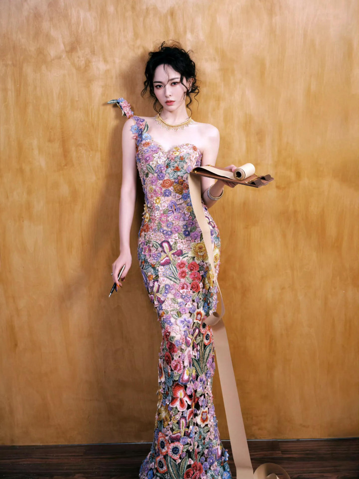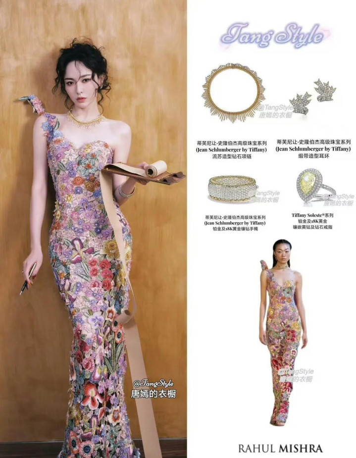 唐嫣W盛典造型, 穿花卉刺绣裙花神降临, 这是把春天都穿在了身上