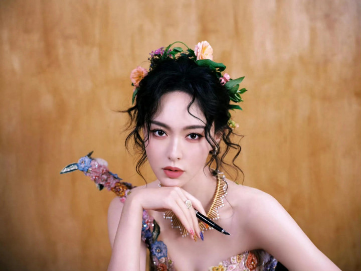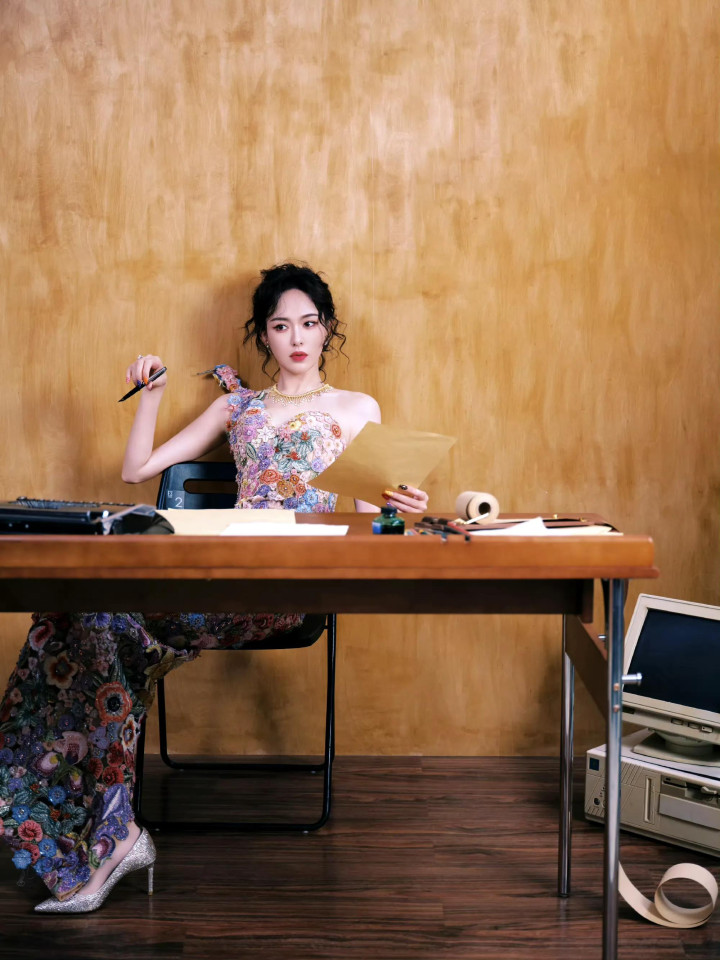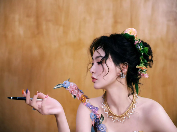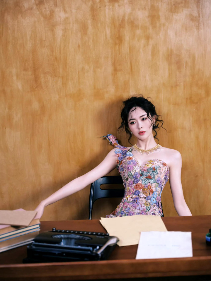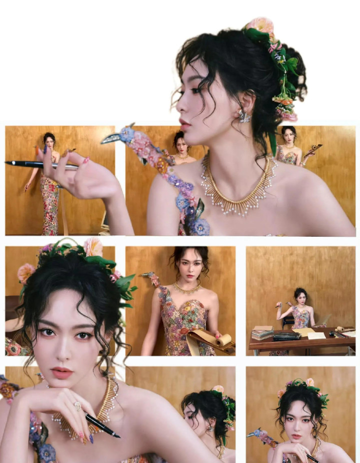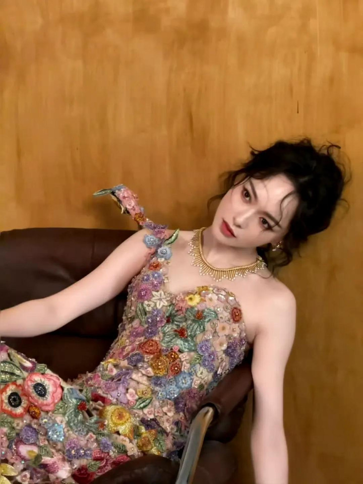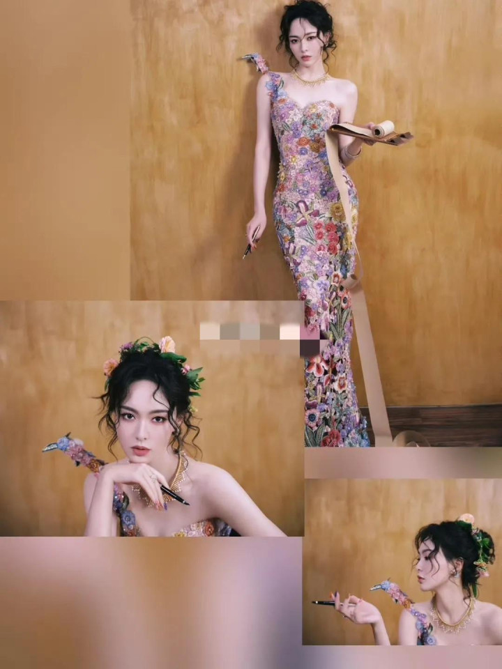 唐嫣W盛典造型, 穿花卉刺绣裙花神降临, 这是把春天都穿在了身上