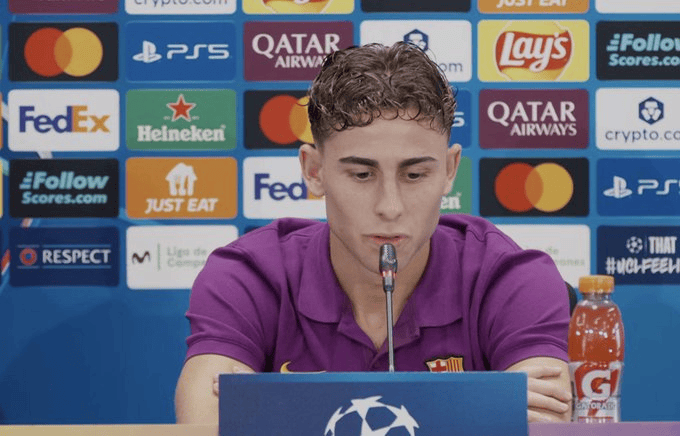 虎扑10月20日讯巴塞罗那中场费尔明出席对阵奥林匹亚科斯的赛前发布会。