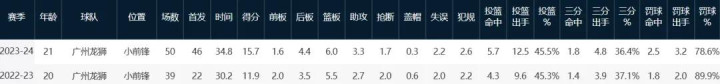 24-25赛季,司职锋卫摇摆人的崔永熙为篮网出战5场常规赛,场均上阵2分钟,得到0.6分0.4板;发展联盟出战6场比赛,场均上阵14分钟,贡献5.2分2.2板1助。