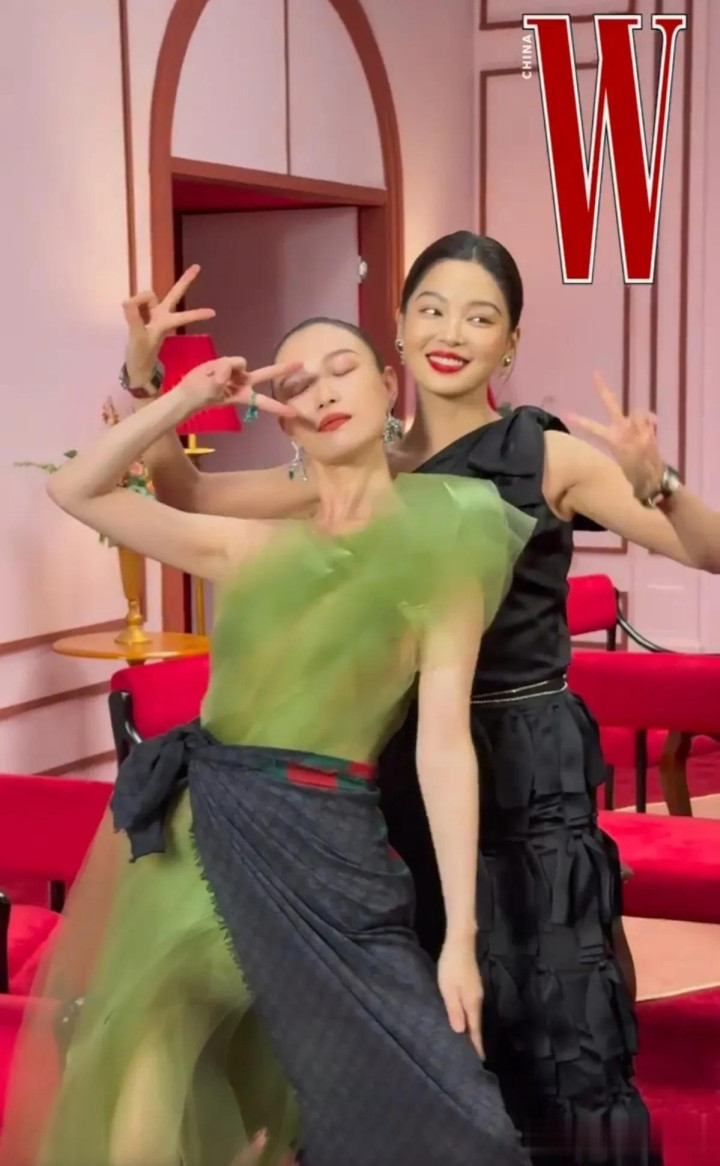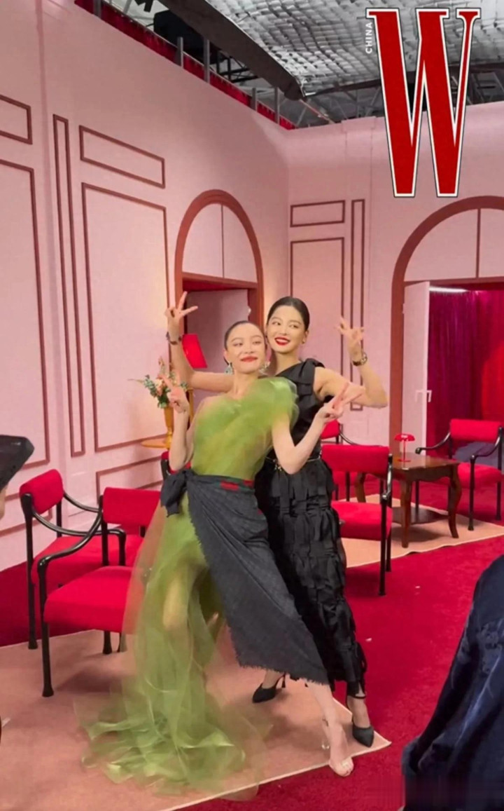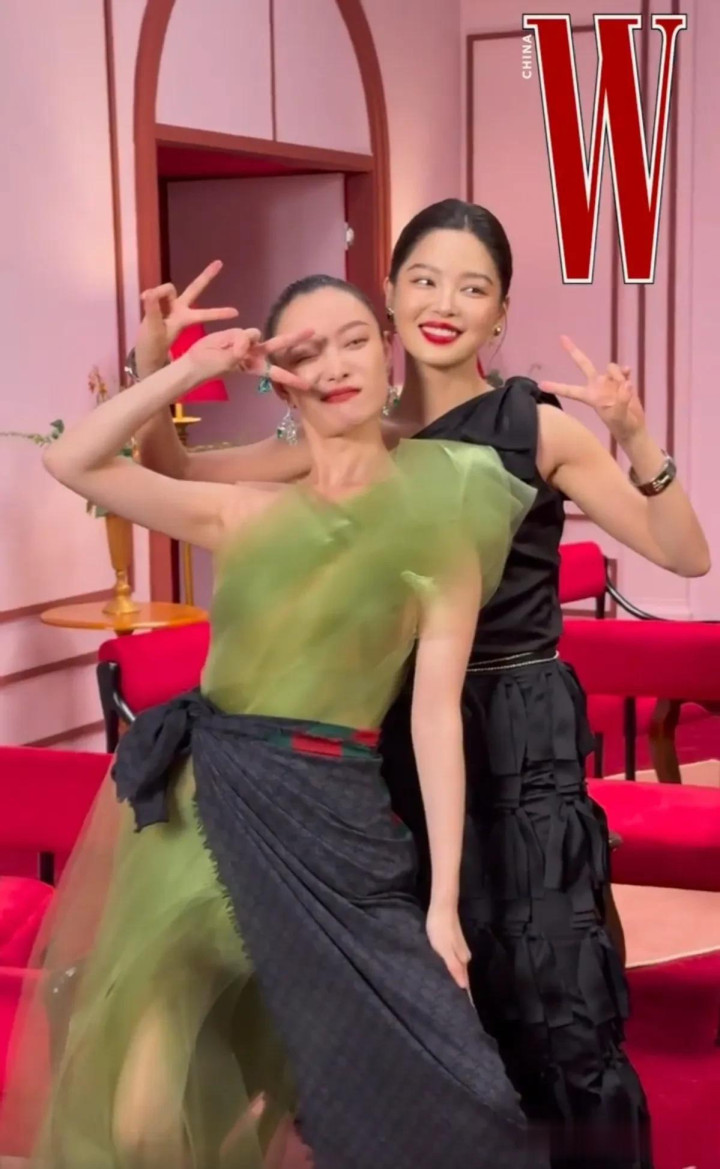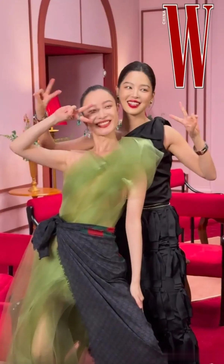倪妮和辛芷蕾的搞怪合影, 两位都好有气质, 是85花的颜值担当!