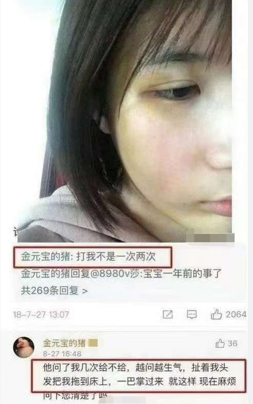 2018年,《延禧攻略》热播期间,@金元宝的猪曾发布长文,控诉许凯与自己谈恋爱过程中出轨、家暴,还晒出自己脸上被打青紫的照片。