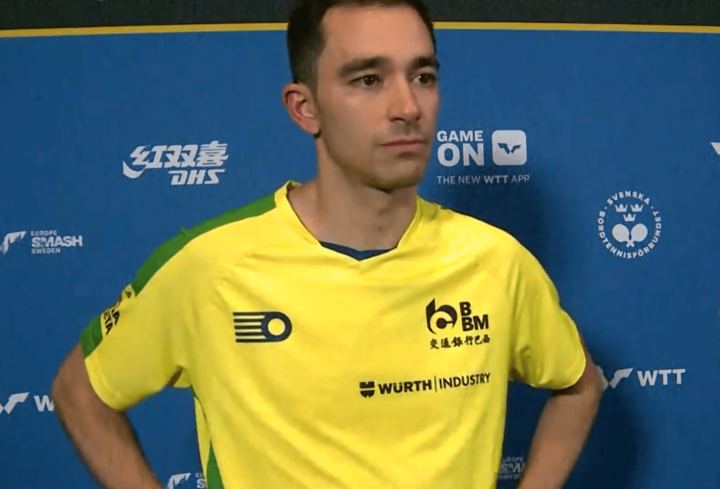 虎扑08月21日讯在此前结束的WTT瑞典大满贯男单32强赛中,世界第4位的巴西选手雨果3-1战胜了世界第35位的温瑞博。赛后,雨果本人也是接受了媒体的采访。