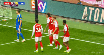 直播吧8月24日讯 英超第2轮,阿森纳主场迎战利兹联。上半场比赛第34分钟,廷伯利用角球头球首开纪录。