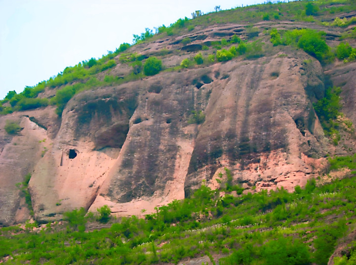 襄王沟最绝的不是像谁,而是它那身 “丹霞铠甲”。不同于九寨沟的柔情似水,这里的山是硬邦邦的汉子型,层层叠叠的砂岩像被老天爷揉皱了的橙红绸缎,阳光一照能晃得人睁不开眼。当地人说这山是 “十瓣外莲包八瓣内莲”,站在山顶往下看,丹江像条银链子把这些 “莲瓣” 串起来,这种地貌在整个西北都找不出第二家。最妙的是那些藏在岩壁里的唐代崖窟,洞窟里的壁画还留着当年工匠的凿痕,随便一块石头都比网红打卡点有故事。
