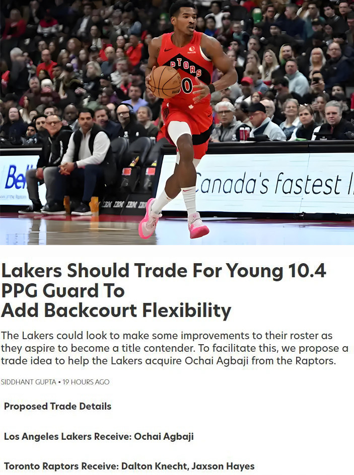 对于这笔建议性交易湖人和猛龙能达成吗?