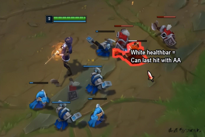 在本文撰写时,拳头游戏尚未就该功能发表官方声明,但总体来说,小兵的血条将被分为两部分,当小兵的血量达到某个临界值时,其血条颜色将变为白色,表明该小兵已准备好被“最后一击”,玩家很容易就能判断补刀时机。Last Hit是MOBA游戏的术语之一,意味着玩家对小兵进行最后一下攻击,国服玩家更喜欢称为“尾刀”。而这个全新的功能,则是系统提醒玩家何时能够对小兵进行最后一击。