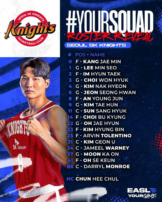 原文如下:”东亚超级联赛25-26赛季,A组阵容包括:日本B联赛冠军宇都宫王道、中国台北PLG亚军中国台北富邦勇士、韩国KBL亚军首尔SK骑士(SeoulSKKnights)、中国香港冠军香港东方,目前3个球队的队伍名单已经出炉!“