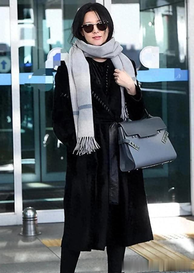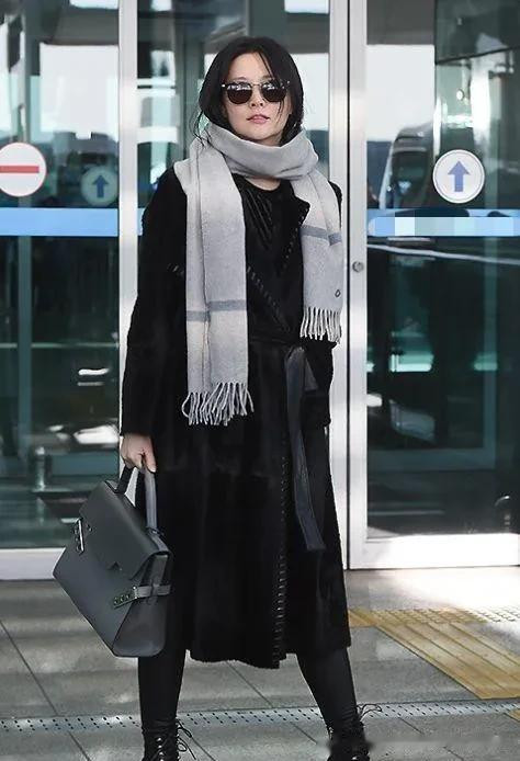 54岁李英爱换风格后气质大变! 穿黑大衣+打底裤+围巾, 简约又贵气
